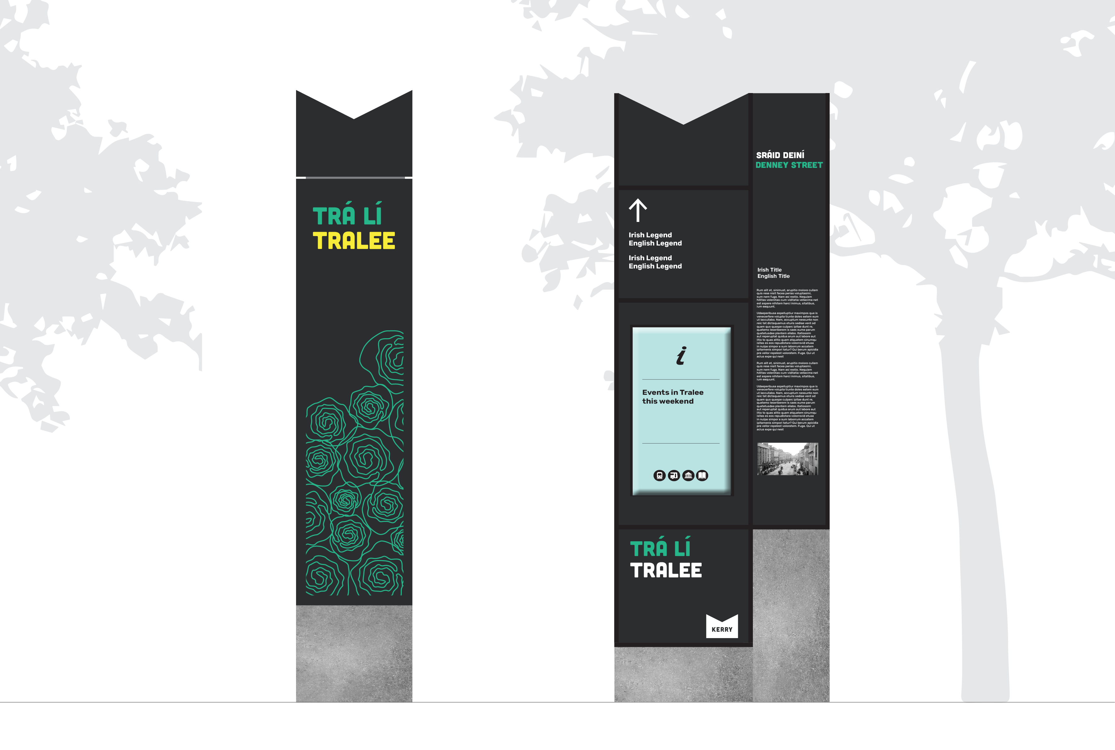 Tralee is one of County Kerry’s main tourist hubs. It functions as a stepping stone to explore Kerry and the Dingle Coastline more widely as well as it being a destination in its own right. Yet it didn’t have a cohesive wayfinding scheme to help visitors make the most of their stay.
